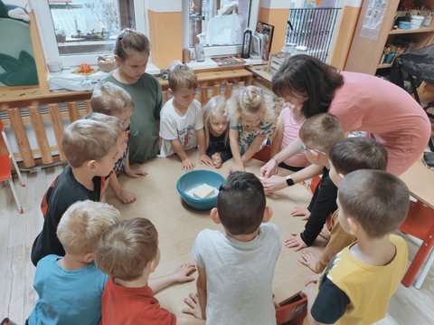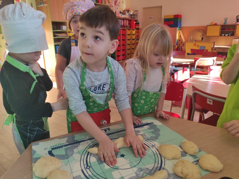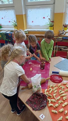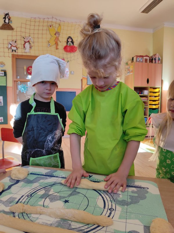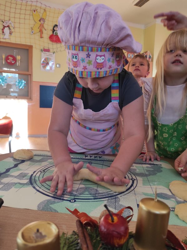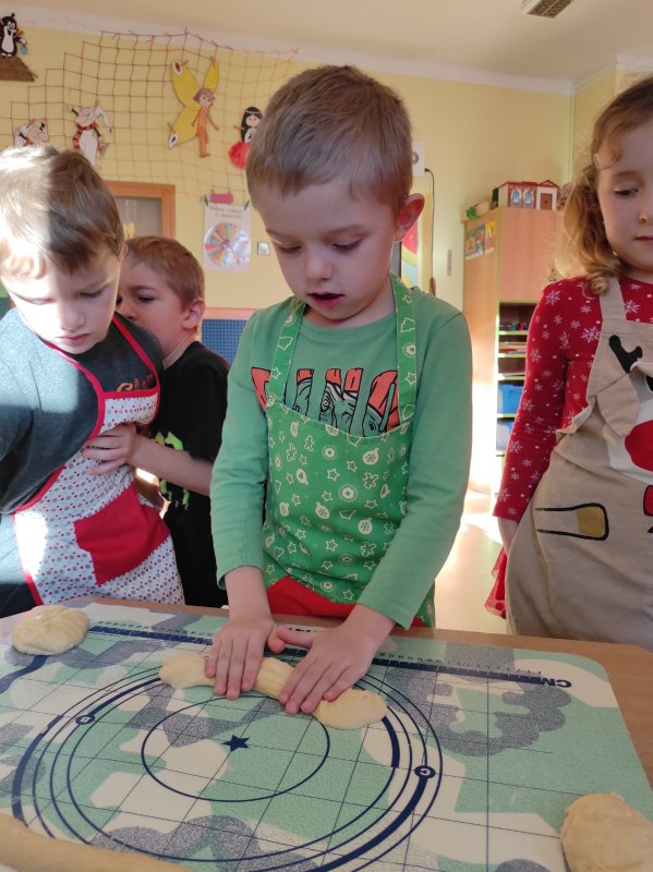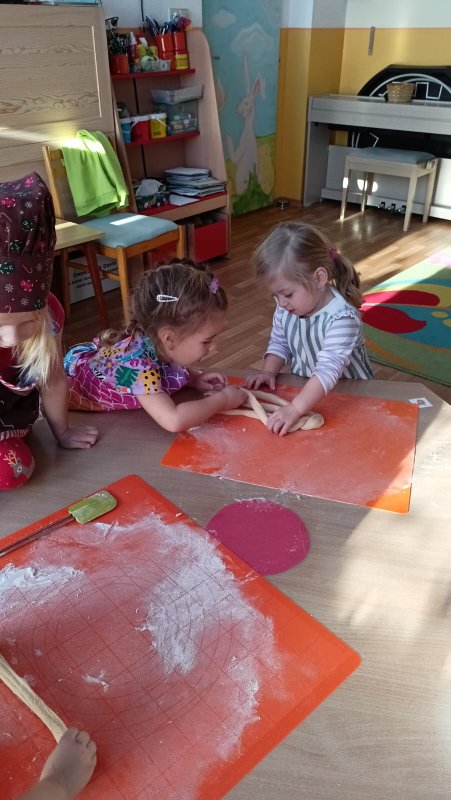 Letošní naše pekařské trio (po hnětýnkách a svatomartinských rohlíčkách) jsme završili pečením vánočky. Druhý den si na ní děti o svačině náramně pochutnaly.