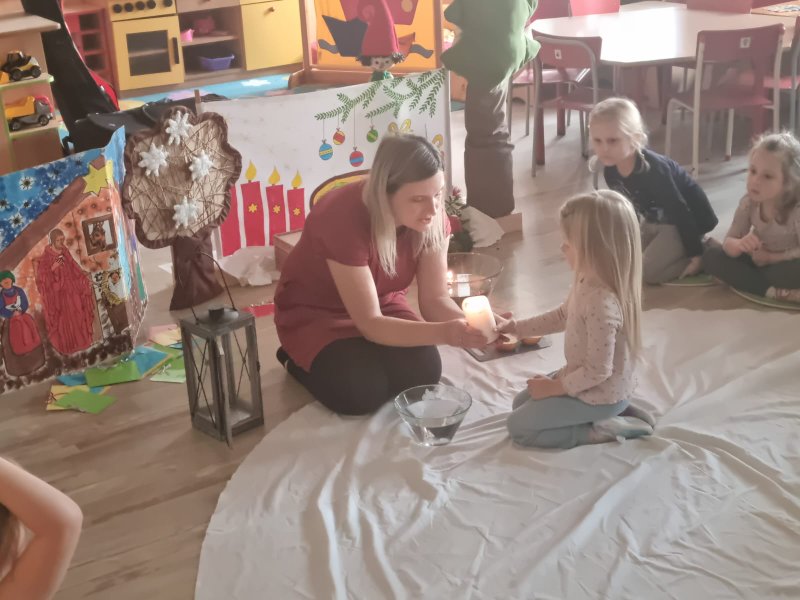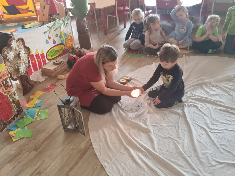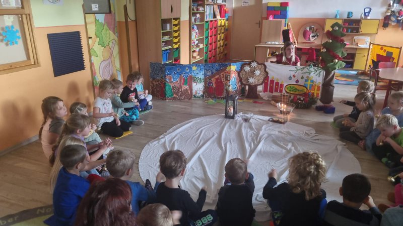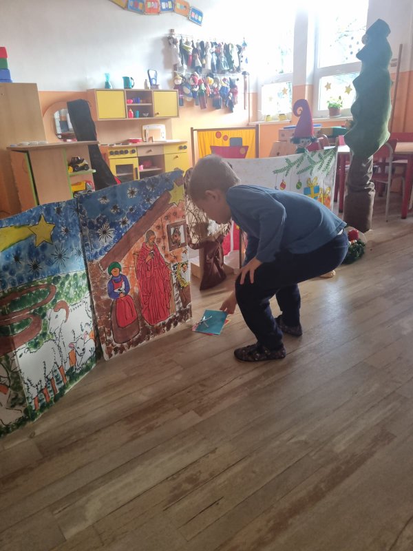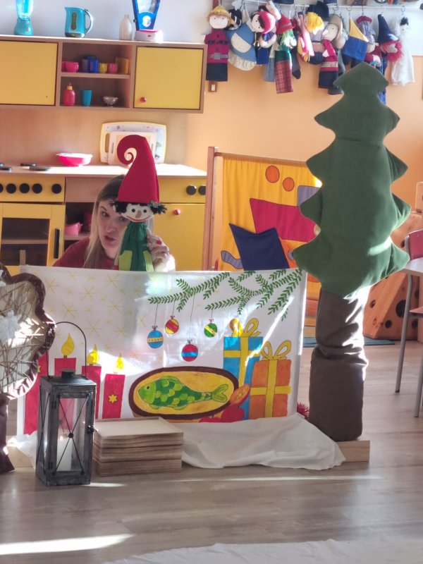 Hned prvního prosince k nám zavítalo divadélko se skřítkem Zvídálkem, kde se děti prostřednictvím příběhu a vlastního prožitku seznámily s tradicemi a zvyky týkajících se adventu a vánočního času.