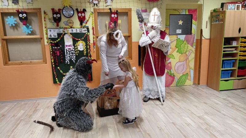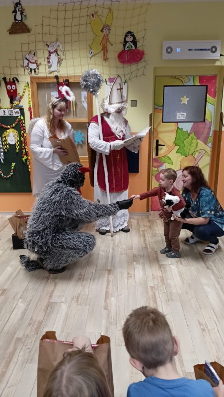Mik mik Mikuláši, čertíku Barnabáši, s andílkem přišli jste k nám, písničku Vám zazpívám…..tímto tanečkem přívítaly letos děti Mikuláše a jeho družinu. Vysloužily si bohatou nadílku, která jim udělala velikou radost.